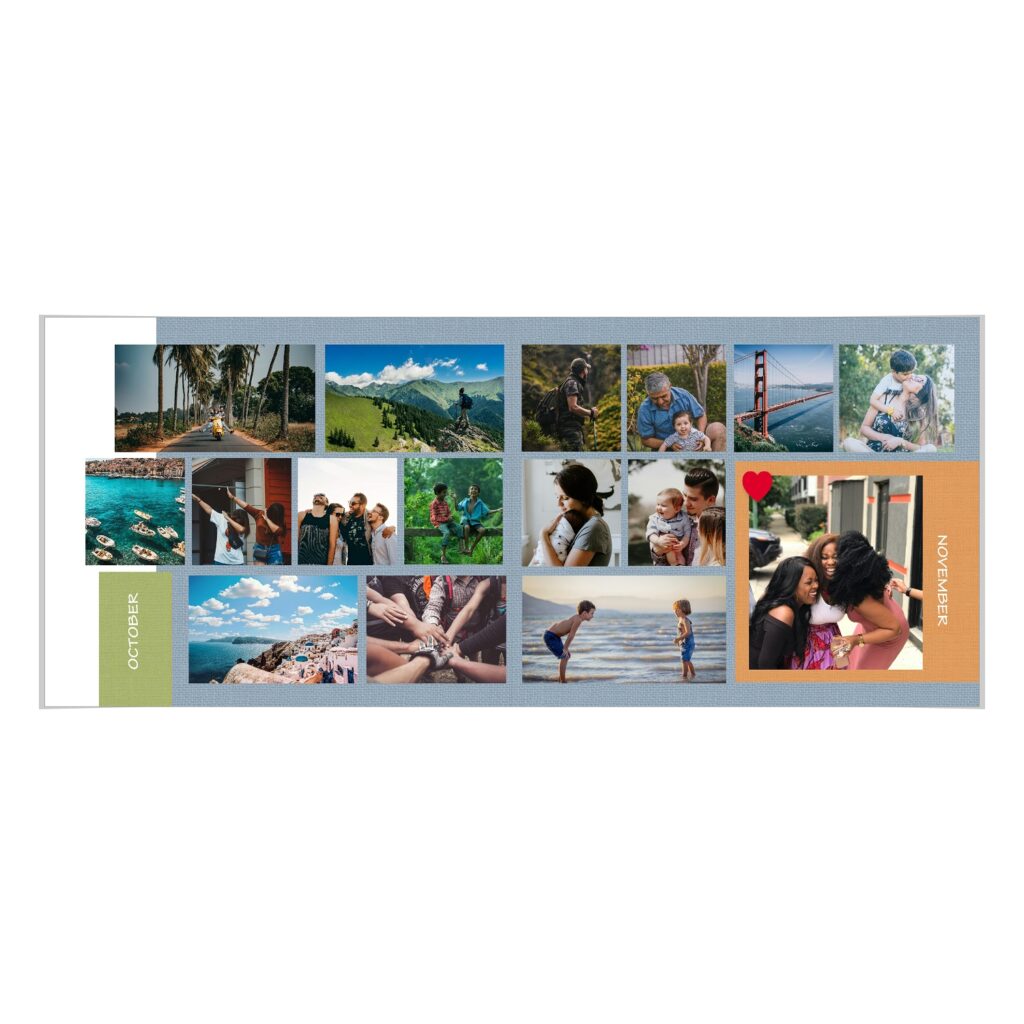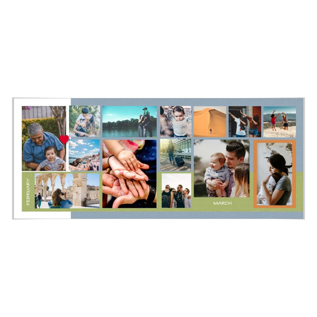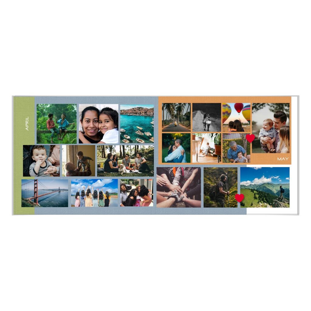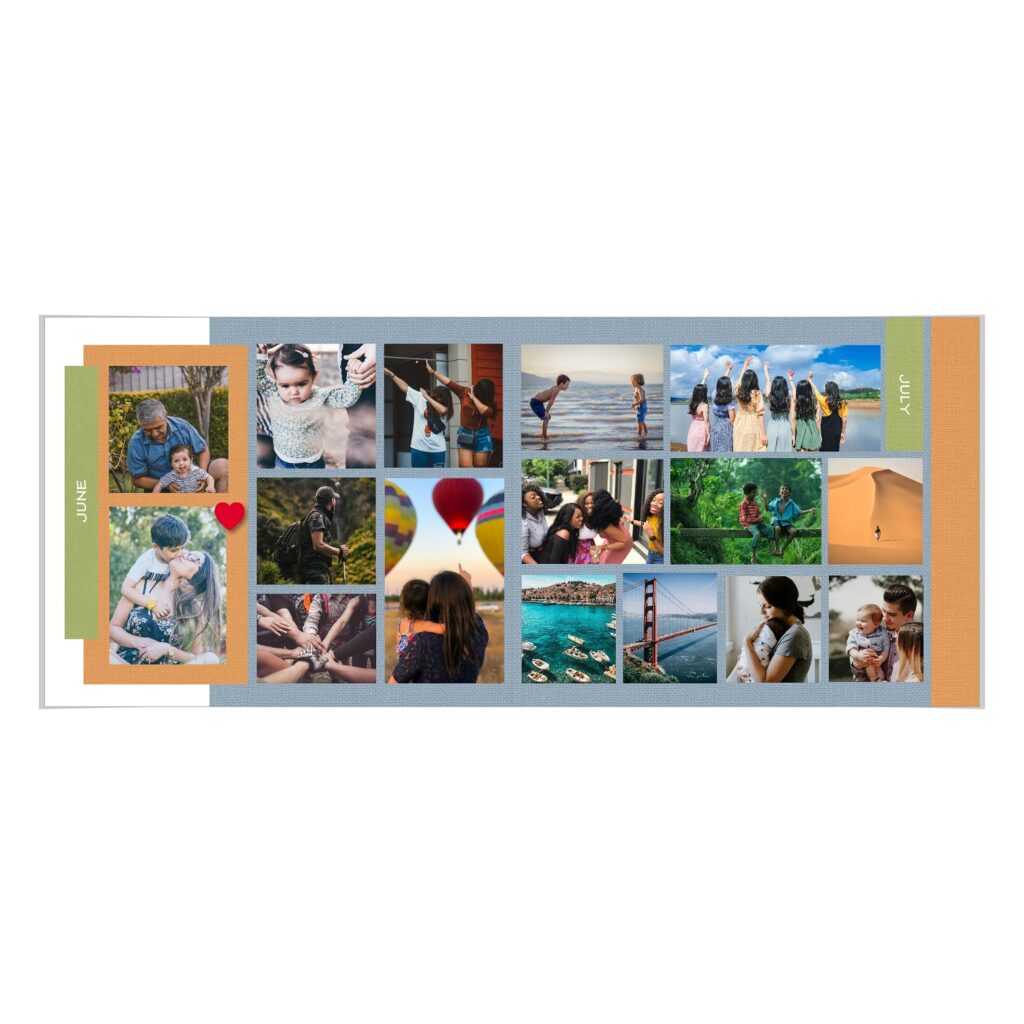 • The spreads provided are a guide for photo placement, and the layout will adjust to fit the orientation of your images.