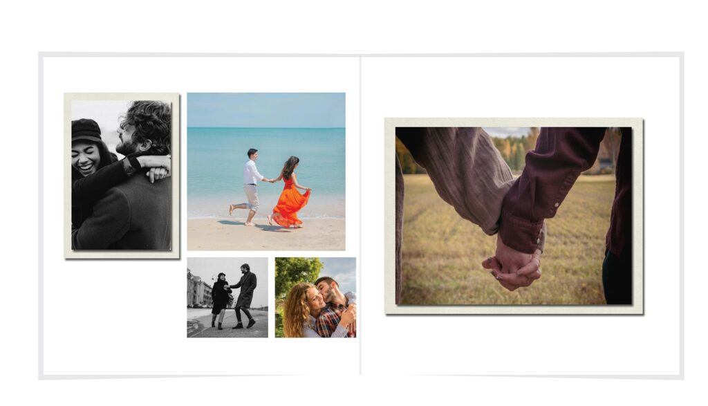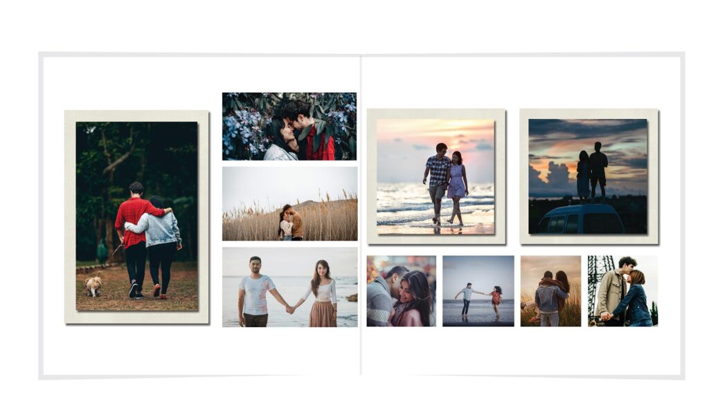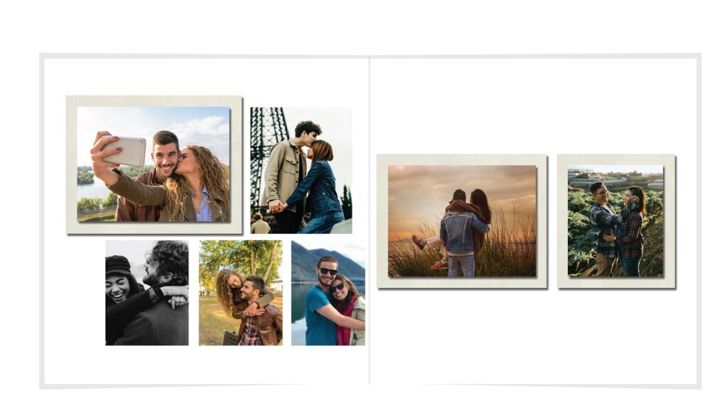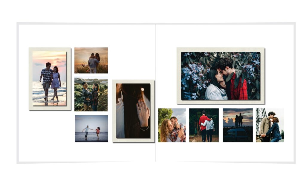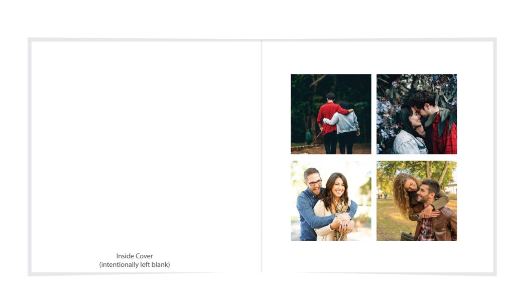• The spreads provided are a guide for photo placement, and the layout will adjust to fit the orientation of your images.
