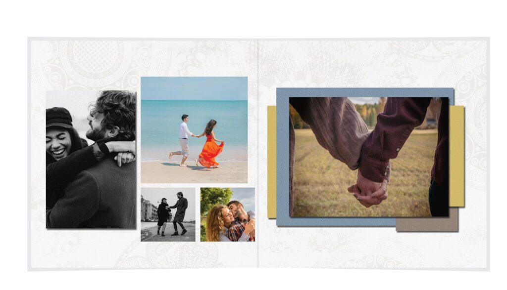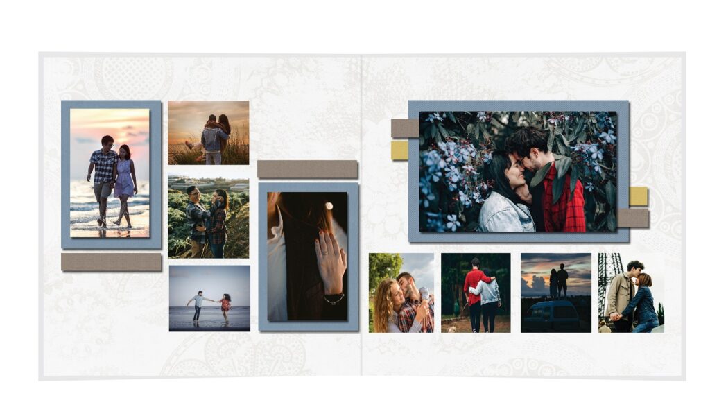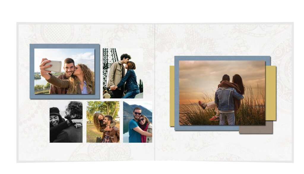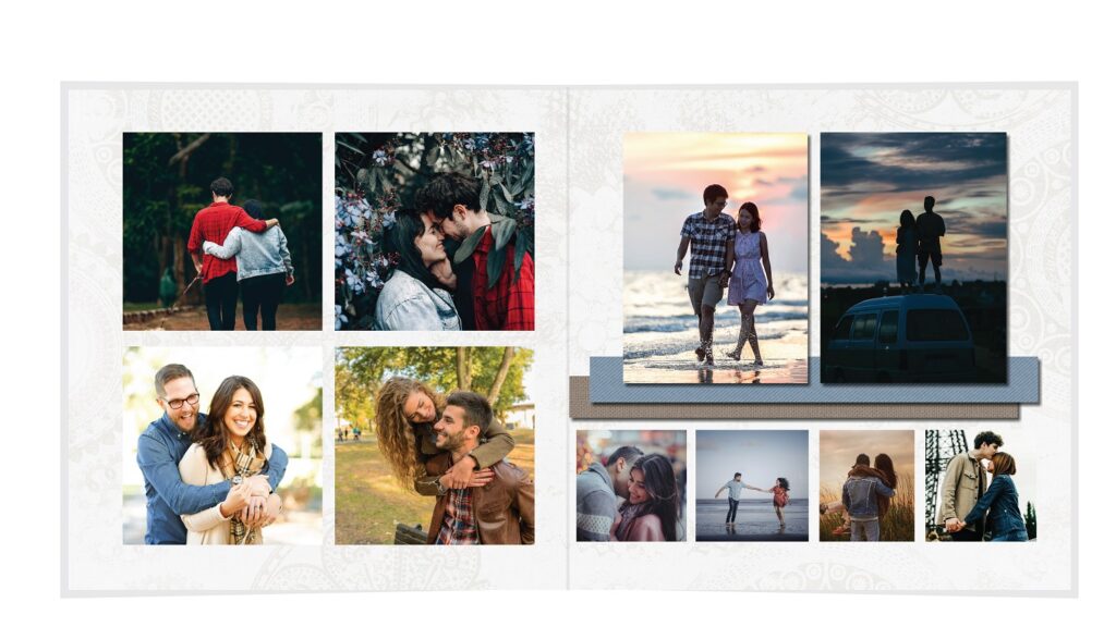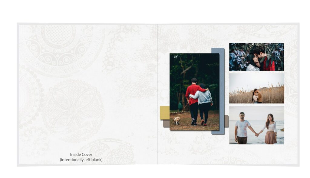 • The spreads provided are a guide for photo placement, and the layout will adjust to fit the orientation of your images.
