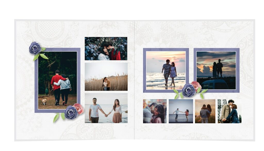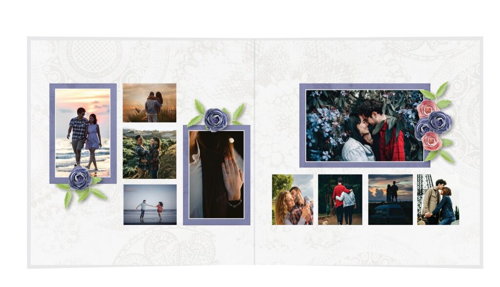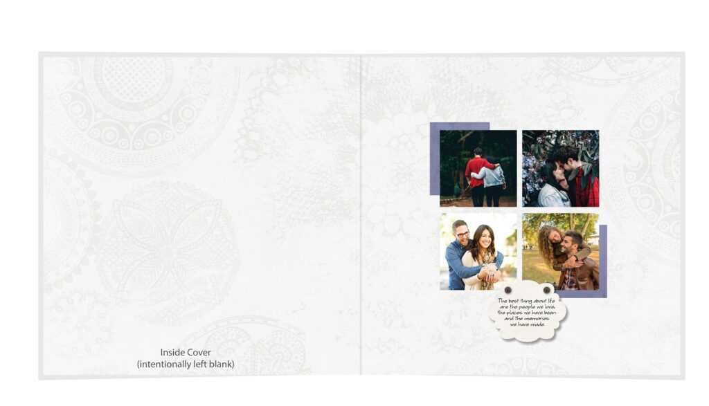 • The spreads provided are a guide for photo placement, and the layout will adjust to fit the orientation of your images.