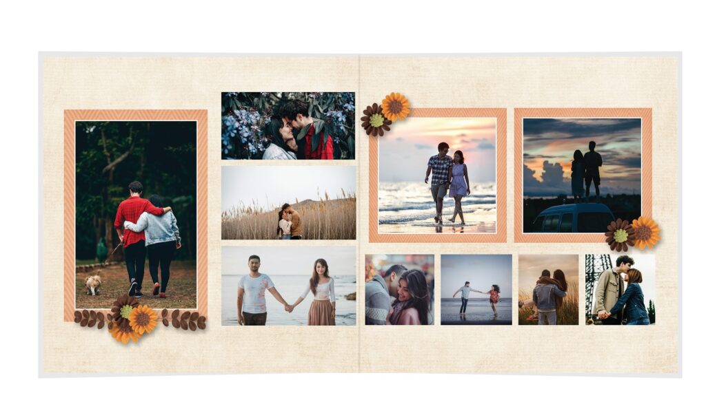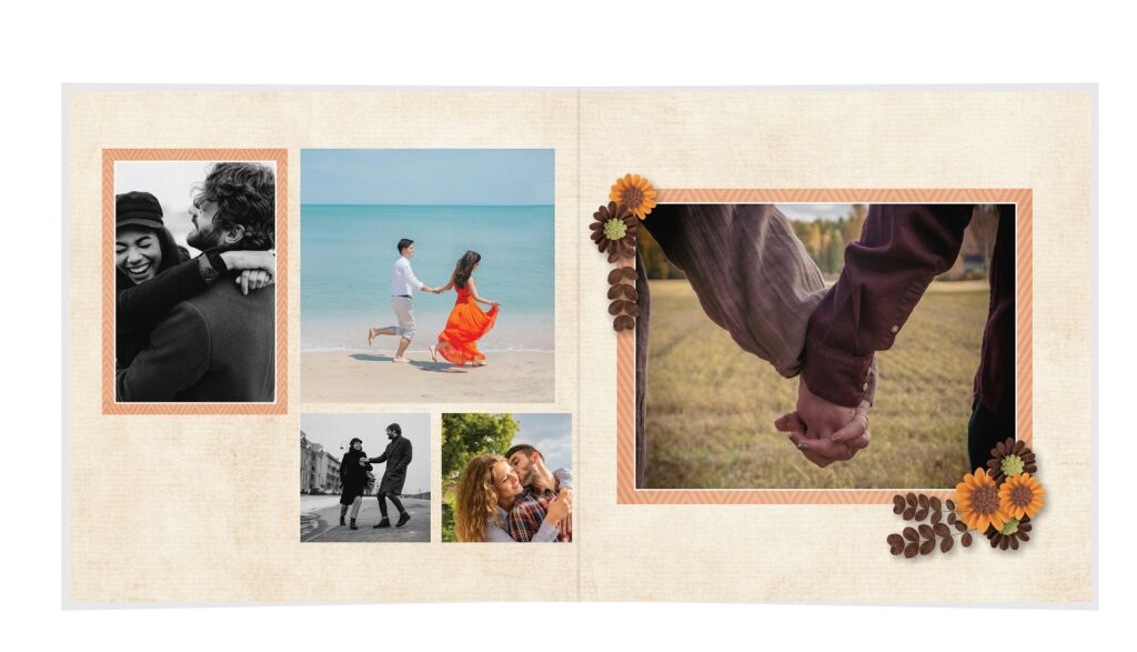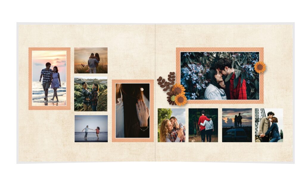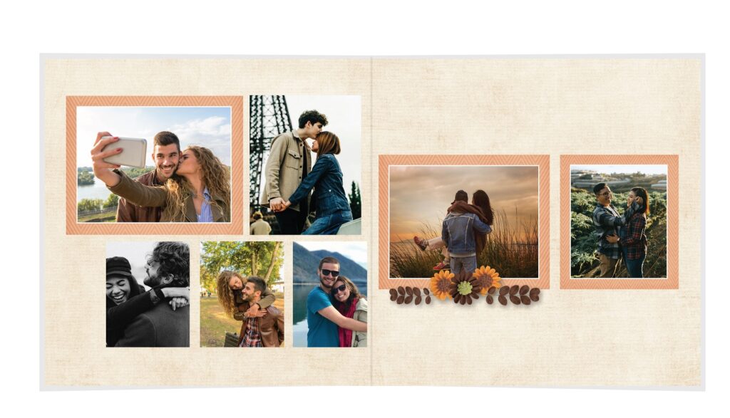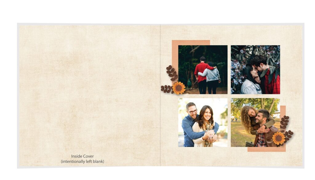 • The spreads provided are a guide for photo placement, and the layout will adjust to fit the orientation of your images.